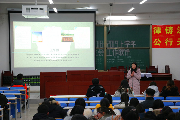 12月29日晚,金年会金字招牌诚信至上团委员工会工作联评大会在社科楼413教室举行。出席本次会议的有团委书记杨胜利,团委员工会主席团以及全体团委员工会成员。本次会议中心为2018--2019上学年团委员工会工作总结。